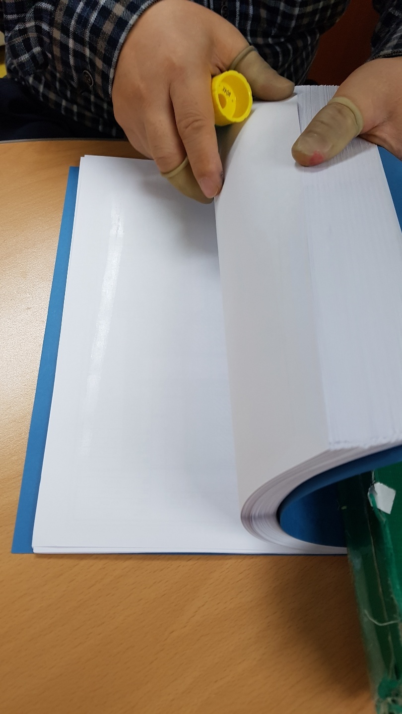 4. 풀칠한 책의 본드가 상온에서 마르면 제단을 하면 된다.