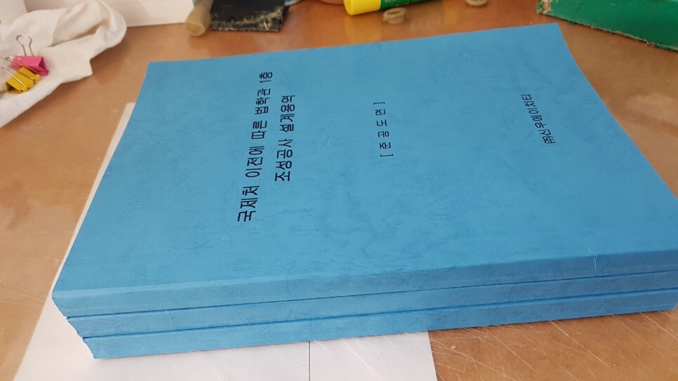 그러다 보니 최근에는 반책제본을 선호하는 분들이 많은데, 반책제본은 도면은 A3 크기를 유지하나 도면을 반으로 접어서 A4 크기로 휴대 보관하기가 용이하다.